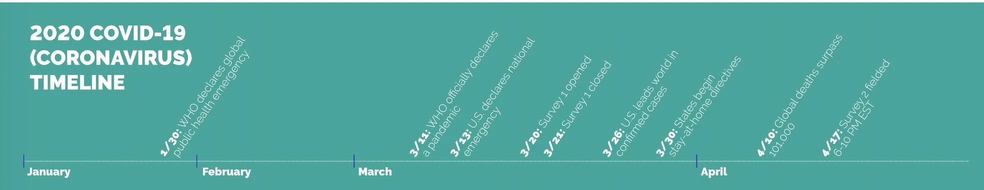 In analyzing data and drawing conclusions about behavior during this pandemic, researchers acknowledge the restrictions suggested and imposed by the Centers for Disease Control (CDC), World Health Organization (WHO), the White House, state and local governments and employers. During the period covered by the survey, cities, counties and states were issuing various degrees of stay-at-home directives. Only essential services were open, with many limited to delivery and drive-through service. On April 16, both the New York Post and The Washington Post reported that the crisis had put more than 22 million Americans out of work.